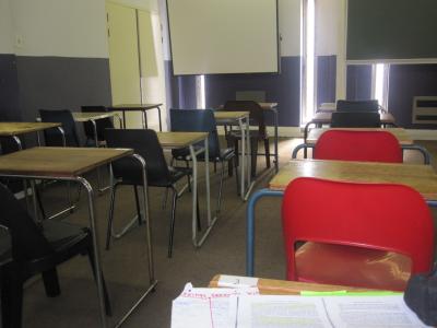 So sieht hier ein normaler TUT Raum aus, nichts mit Zweiertischen oder Gruppentischen.. Schön einzeln und gesittet.. :D