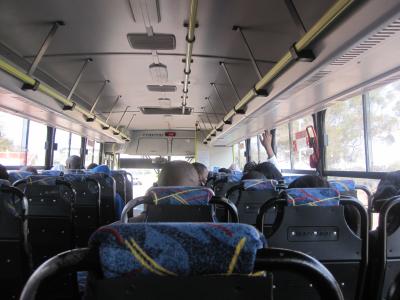 Der Bus hatte, habe ich noch nie gesehen, in einer Reihe 2 Sitze und daneben 3 Sitze. Aber gut für uns natürlich!